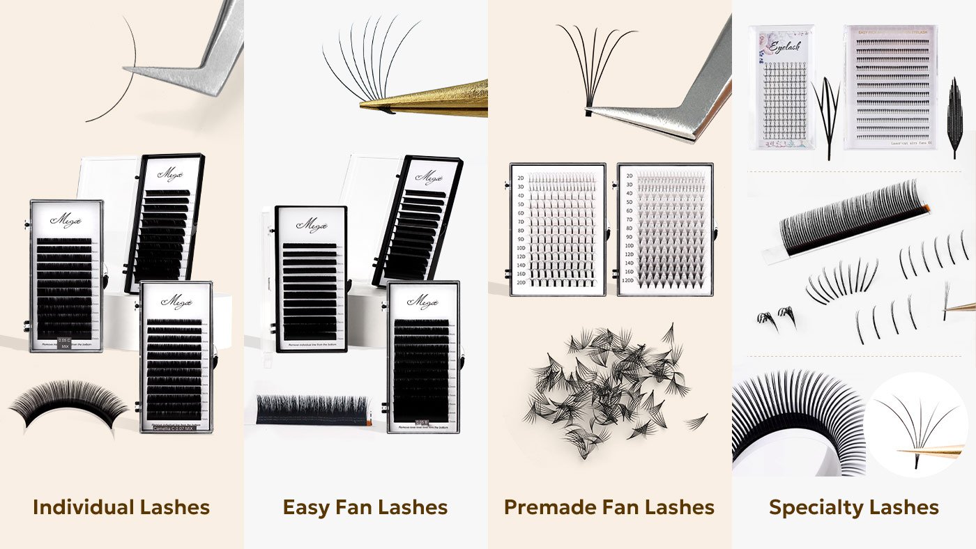 Different types of lash extensions are developed to match different skill levels, working speeds, and styling goals. From traditional individual lashes to advanced premade fans and specialty designs, each category serves a clear purpose in professional lash applications.